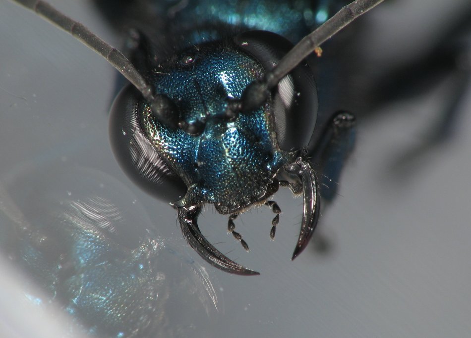 - Front - This view is useless with this individual. For something like the blue mud dauber wasp below, it was very helpful for the ID.