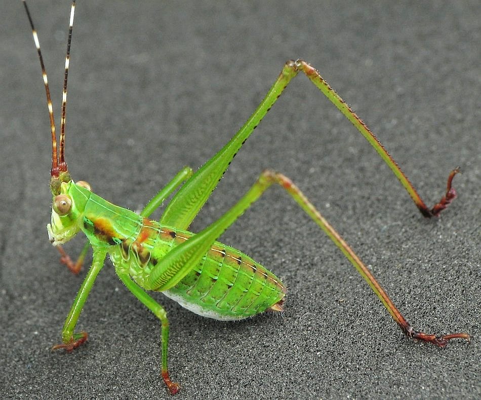 This looks to be a Scudder's Bush Katydid nymph (juvenile). I haven't received a confirmation on the ID. As you can see, it was taken while the individual was on the foam instead of a stage. This was due to the size of the individual.