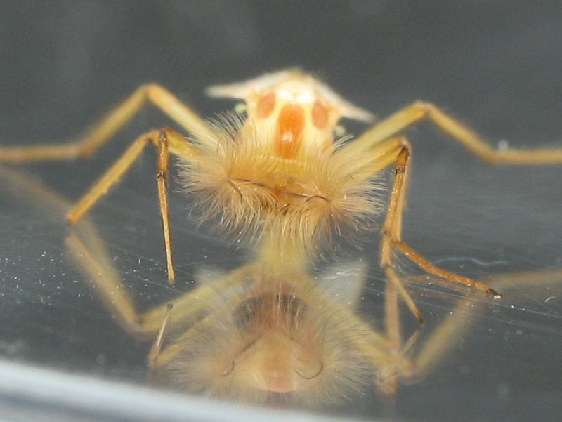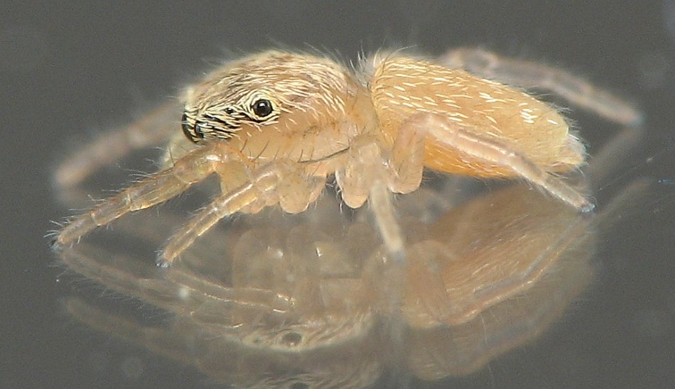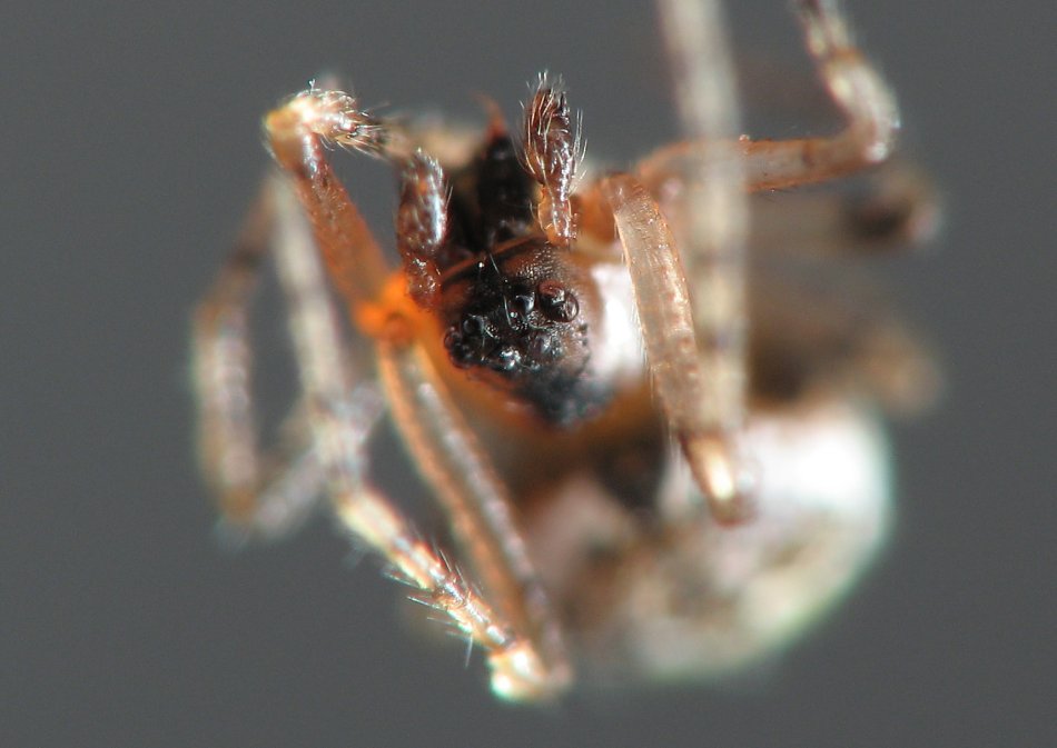 I'm not sure what type of spider this is. It was only ~2mm long and very active so I didn't get many good photos of it.