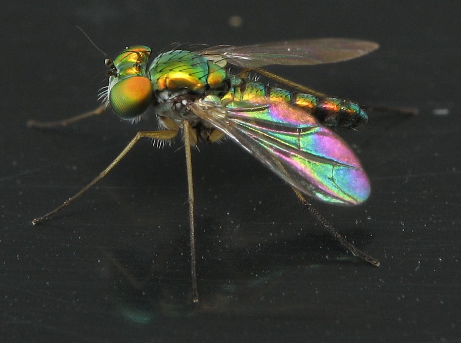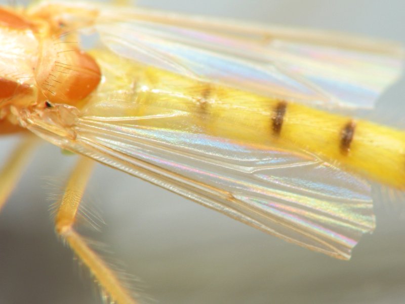 - Wing - Flies and other winged insects can often be identified by nothing more than the venation in their wings. If you're photographing flies, this is an important shot. When photographing the wing, try to get a shot without too much of a reflection from the flash. You want to be able to see the veins like THIS.