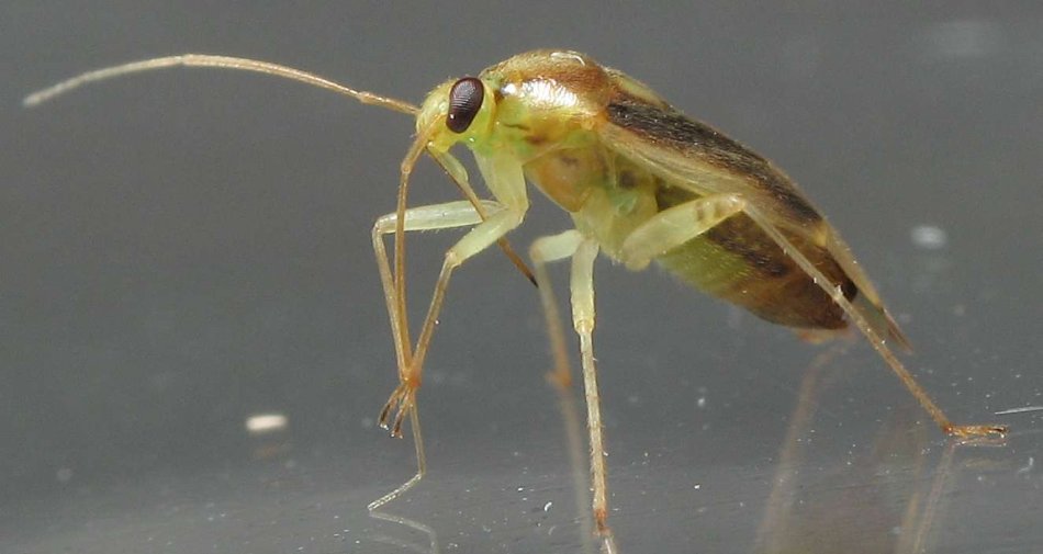 This is a mirid (plant bug). They generally feed on plants using their long proboscis. You can see it in this view of the individual below.