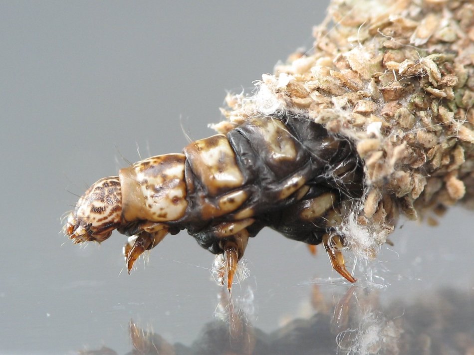 This is a bagworm moth caterpillar. The caterpillar constructs the bag out of silk and debris. The males remain in it only until they emerge from pupation. The females never leave the bag.