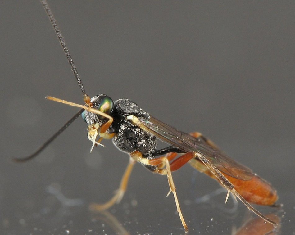 This is an ichneumon wasp. They are parasitic wasps and are no threat to people. They are generally identified by the 'horse head' cell in their wings.