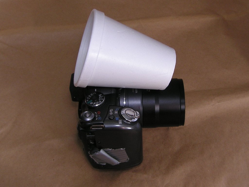 | Additional Information: This is a variation on the bowl diffuser. The cup is a bit thicker than the bowl so you lose more light (which is sometimes a good thing when working very close to objects) but otherwise it works well and is much more compact. |